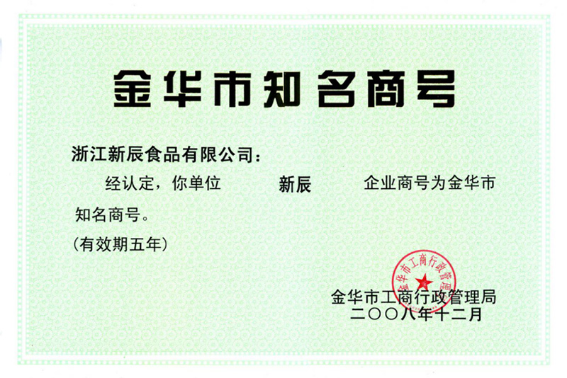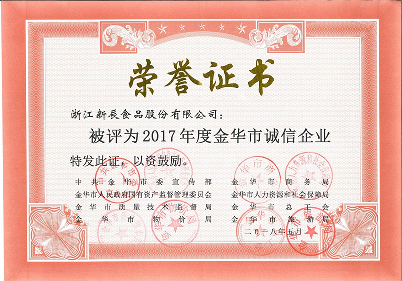 被評為2017年度“金華市誠信企業”,“區重點骨干工業企業,“浙江省級骨干農業龍頭企業