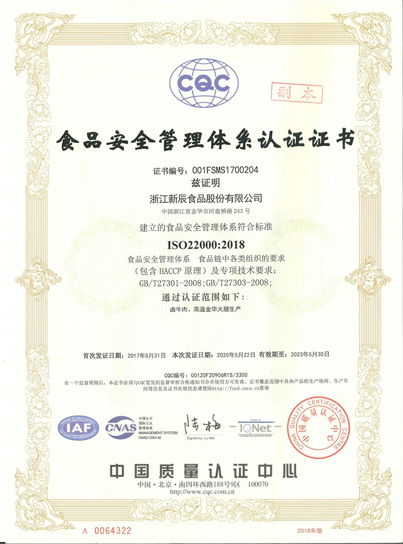 金珠牌肉制品產品被認定為2006金華首屆華東旅游風景名勝博覽會指定(推薦)產品。